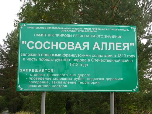 Надо сказать, что такой маршрут себя оправдал, передвигаясь по второстепенным дорогам, мы избежали напряжённого движения федеральных трасс, миновали Москву и увидели много интересного. Так дорога Устюжна — Сандово проходит через сосновую аллею, посаженную пленными французами в 1813 году: