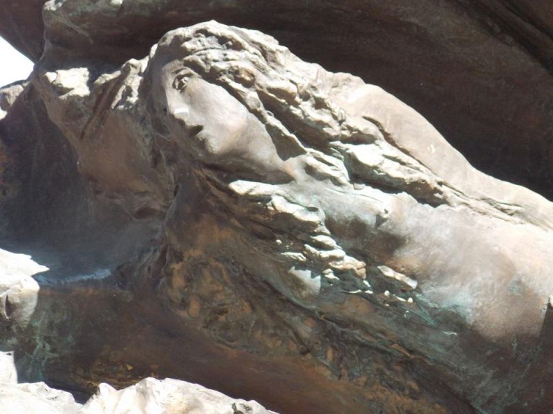 Так вот, памятник был открыт в 2008 году. Он запечатлел геологов и проектировщиков, строителей и геодезистов, которые и воздвигли плотину. Только вот через все ее тело проходит трещина, в которую фонтаном устремляются речные воды. Автор, видимо, наоборот хотел показать, что совместным трудом перекрывается ущелье. Но получилось, как получилось… Кроме того, в прорывающейся воде скульптор изобразил речных жителей. В том числе, видимо, русалок. Но они почему-то очень напоминают утонувших людей.