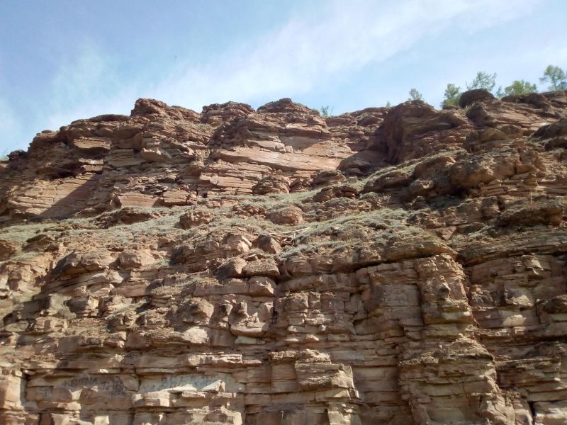 На несколько километров вдоль Лены между Качугом и Верхоленском растянулись уникальные сланцевые красные скалы, называемые Шишкинскими, изрисованные петроглифами.