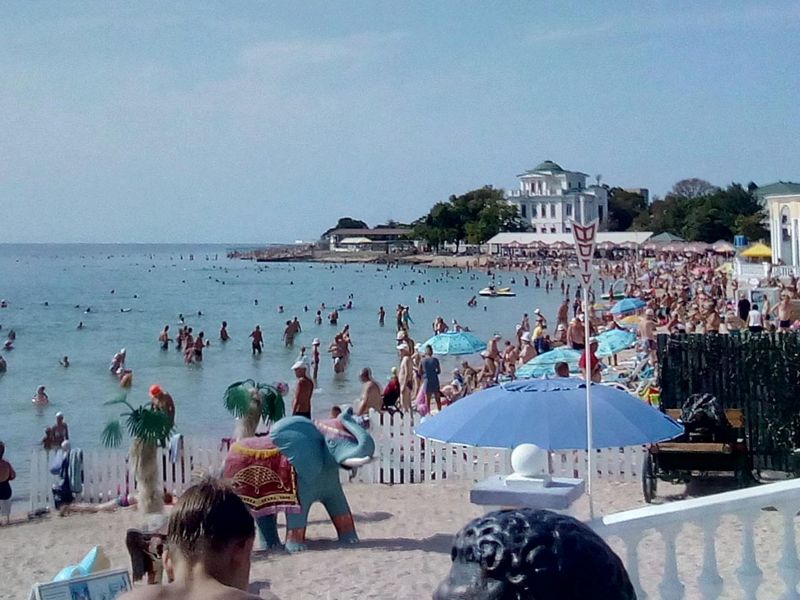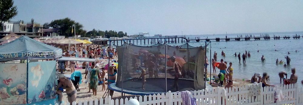 Утро наградило нас за рискованный переезд: пляж – выше всяких похвал. Самое главное, довольно приличная полоса побережья. Это не 10 метров в Евпатории, а раза в два-три больше. Песок чистый, за порядком следят владельцы кафе и других развлекательных заведений.
