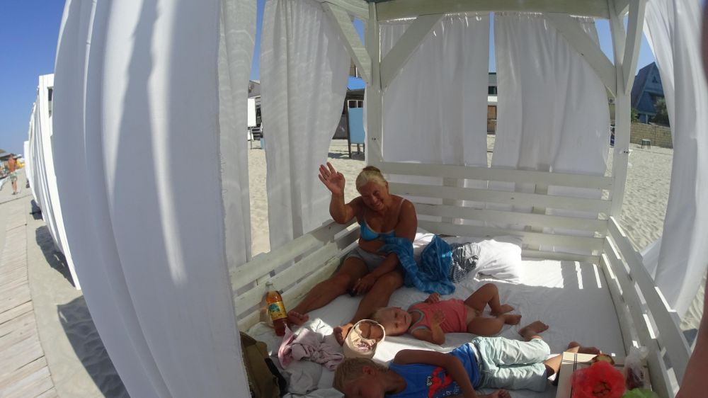 Вход в море пологий и долгий. Детям просто раздолье. Мы хоть немного расслабились, ведь можно лежать и наблюдать, как они плещутся на мелководье или собирают ракушек. Общепит – в шаговой доступности. Главное – на пляже везде кранчики с водой, можно ноги от песка сполоснуть, есть здесь платные душ и туалет.