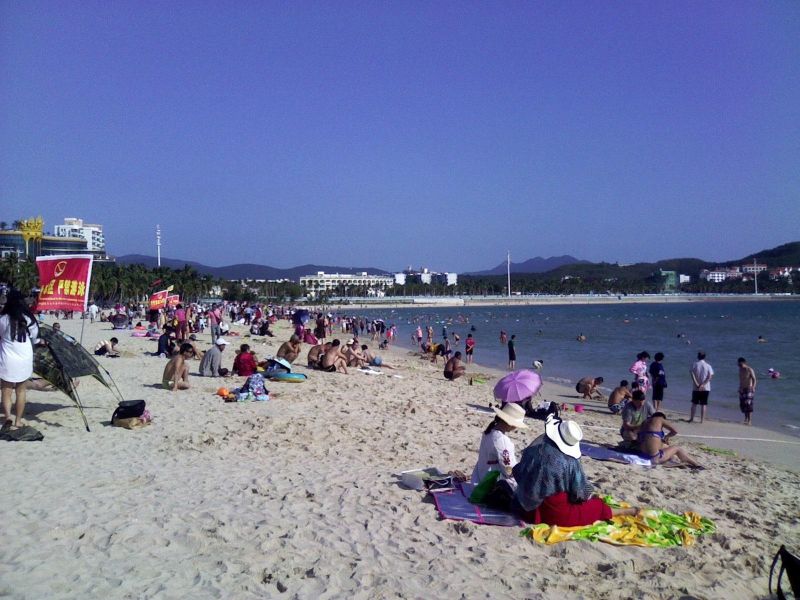 Стоит отметить, что купаются на Хайнани только русские туристы и китайские спортсмены-пловцы. Основная масса рядовых китайцев может только забрести, чтобы вода омыла колена, и все! Чаще всего они и не раздеваются. Напротив, сидят под зонтиками или в палатках со шляпами на головах, закрыв платками лица. Там считается, что чем белее кожа лица, тем выше статус у человека. Оно и понятно: самые загорелые — крестьяне, целыми днями выращивающие рис. Самые светлые те, что работают в офисах с кондиционерами.