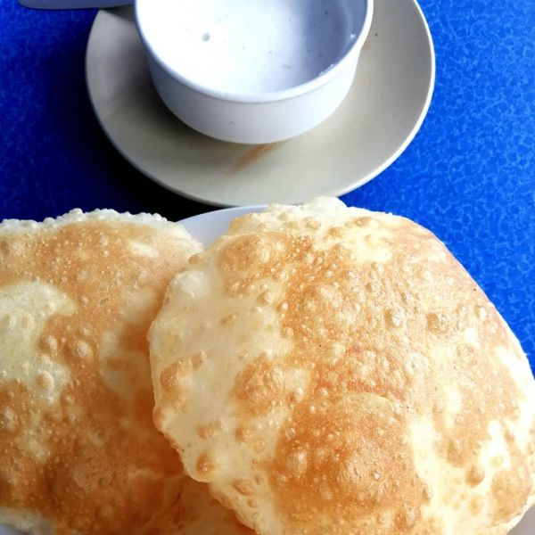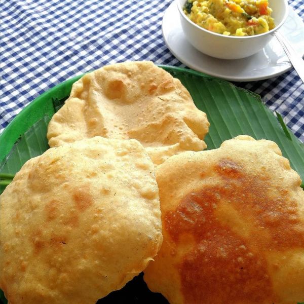 Я про еду. Точнее про пури. Это лепешка, которая выглядит как надутый шар. Оболочка у него - это тоненький слой хрустящего теста. Протыкаешь шар и оттуда выходит пар. Ломаешь кусочки хрустящей корочки и хрумкаешь. Любите ли вы корочку на хлебе? У меня в детстве была мечта: чтобы хлеб состоял из одной корочки. Так вот моя мечта сбылась. Имя ей - пури.