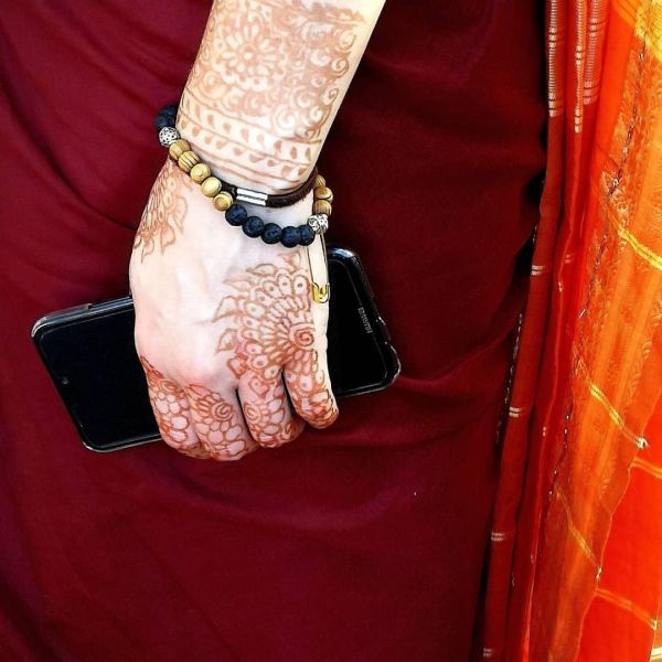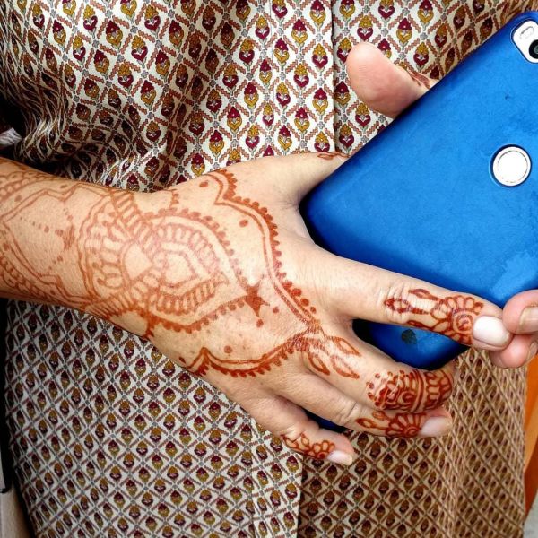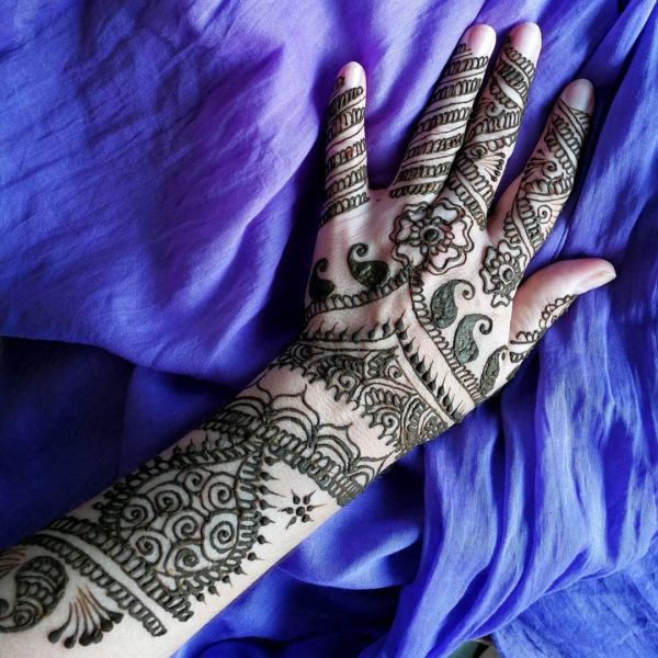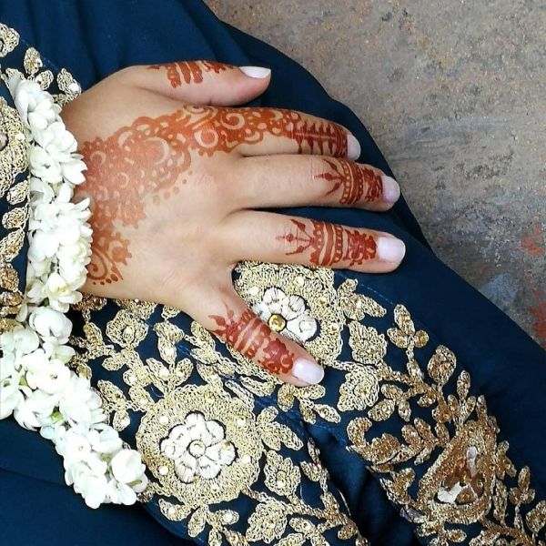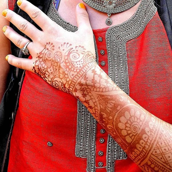 Традиционно узоры хной на тело наносятся перед свадьбой, в рисунках символически зашифровываются пожелания. Традиционное место - это кисти рук и стопы.