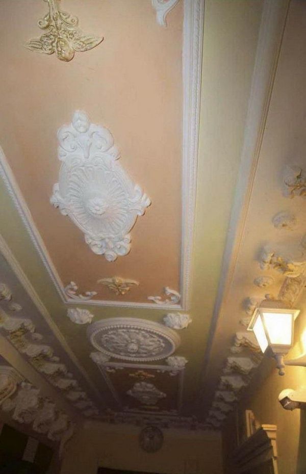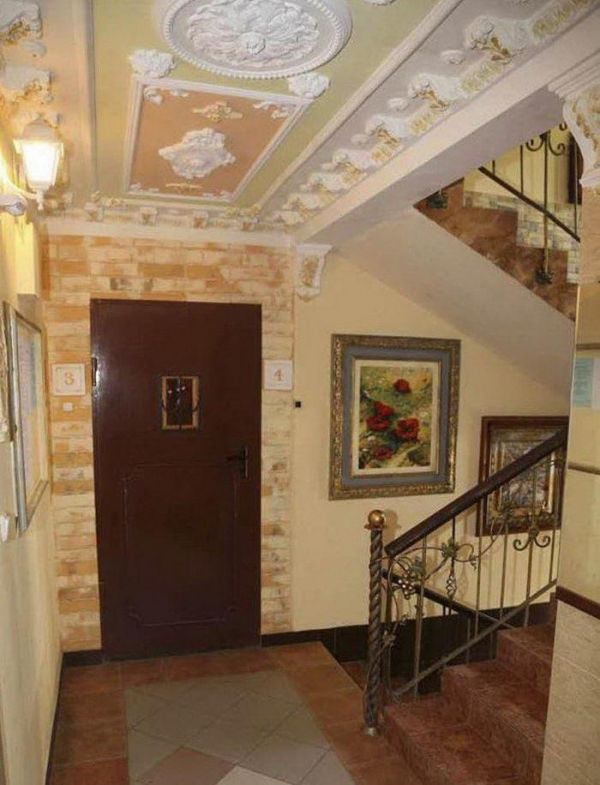 Подъезд украшен не только картинами. Лепниной украшен потолок, на верхних этажах – барельефы. Когда я первый раз оказалась в этом подъезде, у меня было ощущение, что я в музее. Всю эту красоту художник создал сам и на свои личные средства.