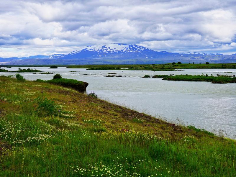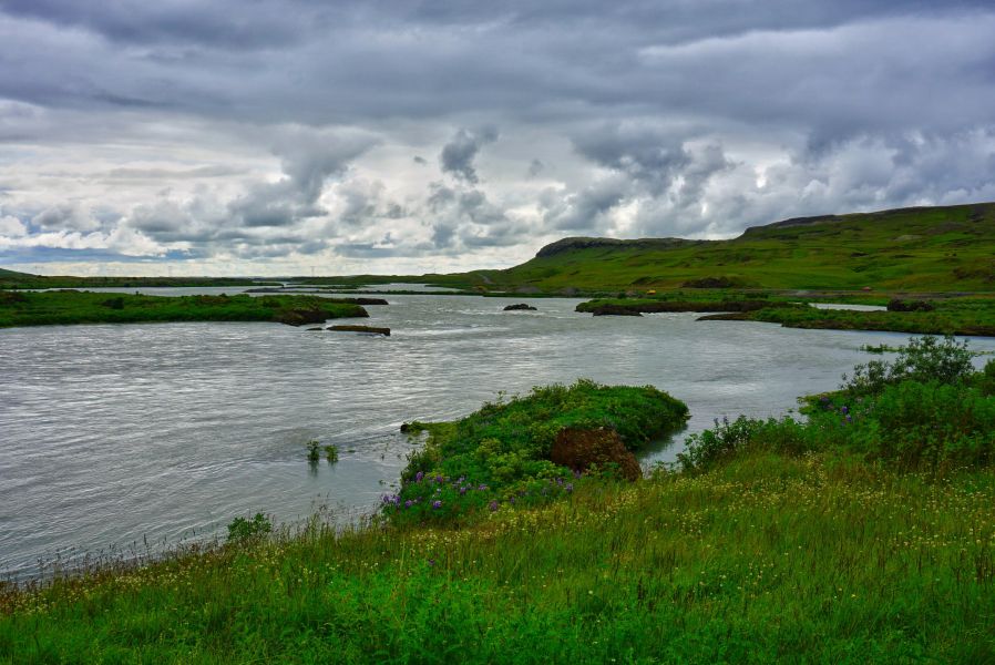 После Долины гейзеров мы отправились дальше по намеченному маршруту. И мне кажется, что каждый метр исландской земли изумляет то черными вулканическими полями, то снежными горными вершинами, то заливными берегами, то лавовыми образованиями... Преимущество путешествия автостопом заключается в том, что, договорившись с водителем, ты можешь остановиться там, где тебе захочется, чтобы запечатлеть проносящуюся мимо красоту...