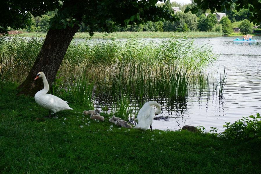 Место-раздолье для прекрасных лебедей, которые совершенно не боятся людей и спокойно выгуливают своё серенькое потомство)