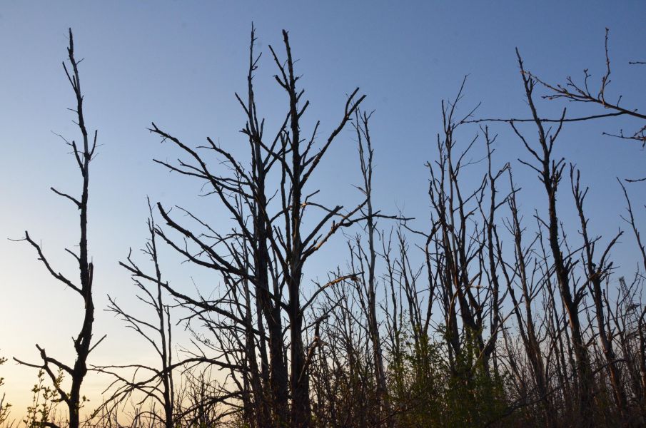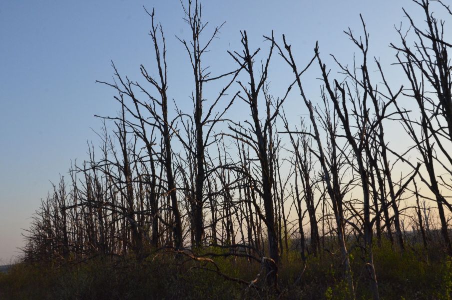 При подъезде сразу же бросилось в глаза целая лесополоса из погибших крепких деревьев. Интригующий вопрос, который возник сразу, так и не смог найти на него ответ.