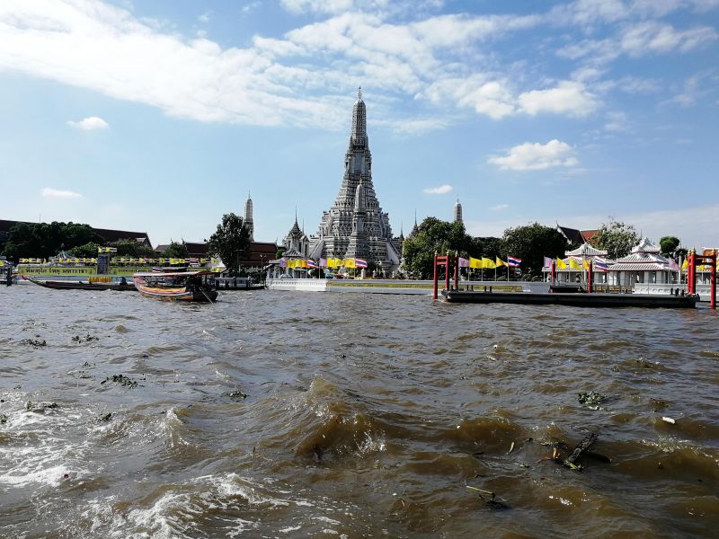 Проще всего до храма добраться на речном трамвайчике, стоимость проезда на лодке с оранжевым флагом стоит всего 15 бат. Можно сначала осмотреть Королевский дворец, расположенный на противоположном берегу, и затем доехать до храма на пароме, за 4 бата. Или сделать наоборот – после Храма посетить Королевский дворец.