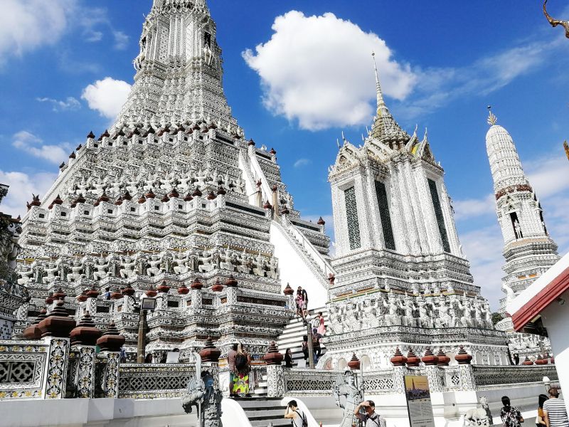 Храм Ват Арун представляет собой комплекс, состоящий из пяти башен. Центральная, или Пхра Пранг, имеет высоту около 79 метров.
