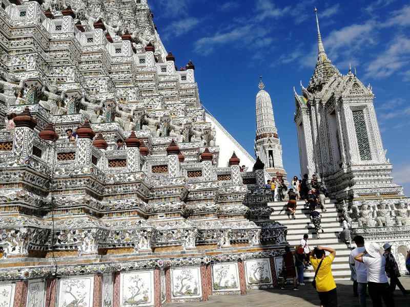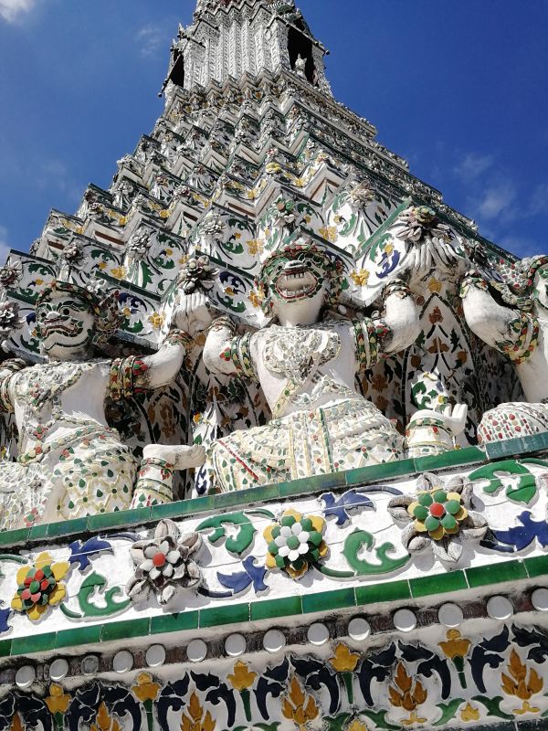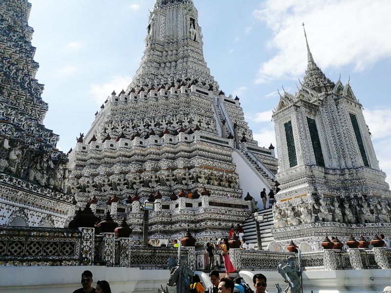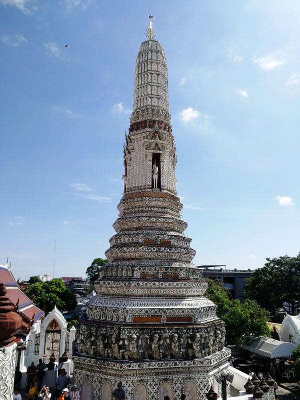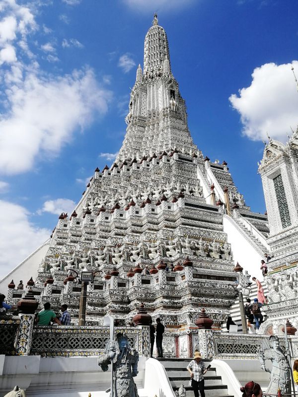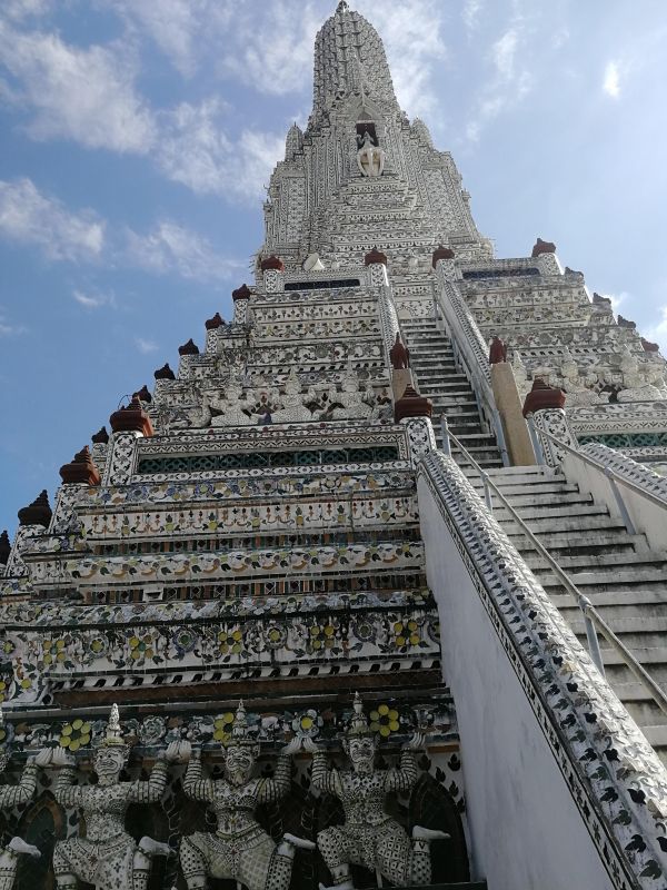 К сожалению, подъем был разрешен только на 1 уровень. Хотя, когда я была в Бангкоке 10 лет назад, мы поднимались до второго яруса, как ни тяжело это было, и любовались панорамой Бангкока.
