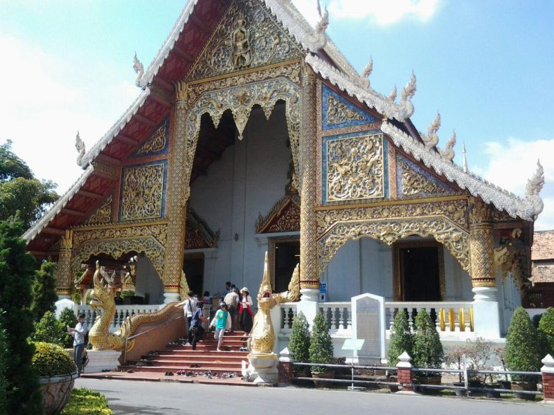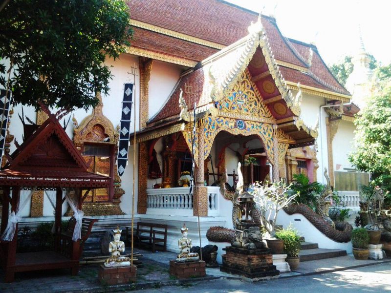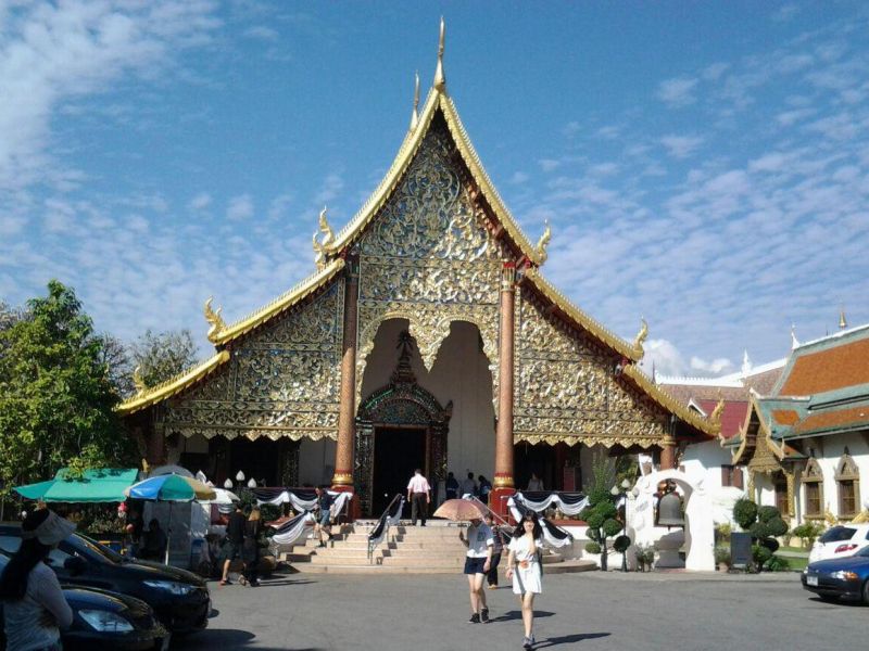 На этом храме немного остановлюсь. Это один из самых больших и значимых храмов. Точнее, это целый комплекс, с главным большим храмом и несколькими поменьше. Храм является примером культуры ланна и был заложен в 1345 году.