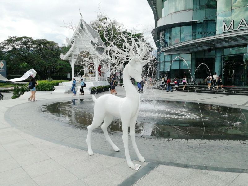 Перед Новым Годом площадь перед ТЦ украшена фигурками оленей – очень изящных.