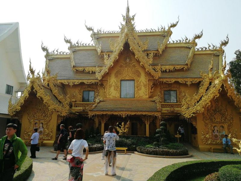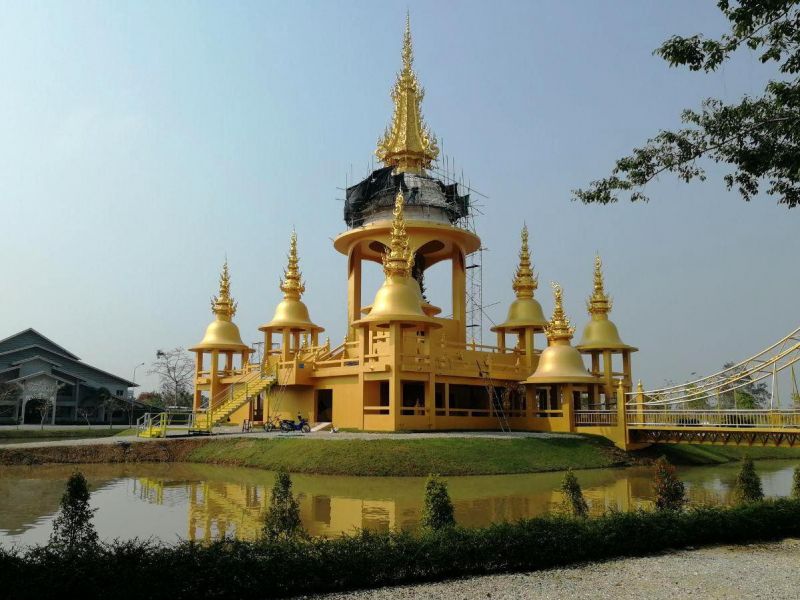Хотя храм называется Белым, на территории комплекса есть и золотые сооружения. Например, этот, еще недостроенный храм.