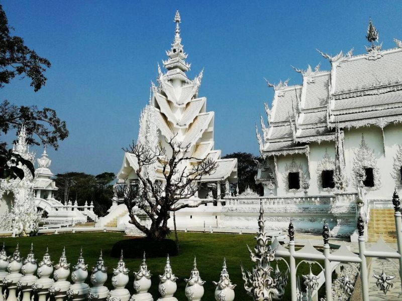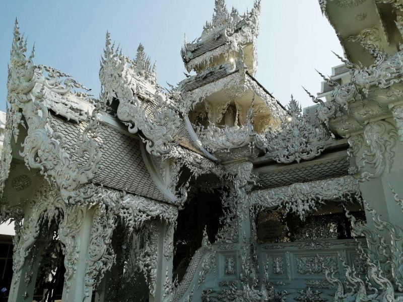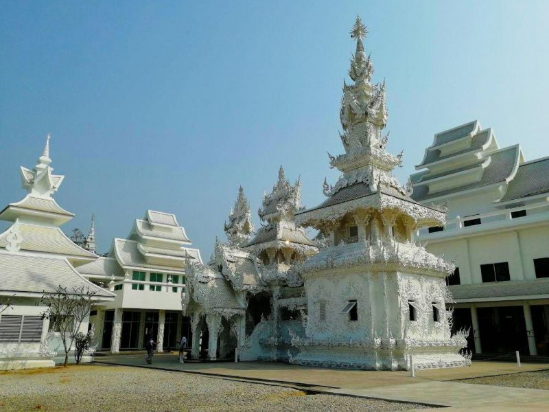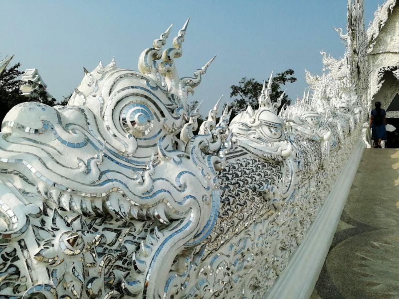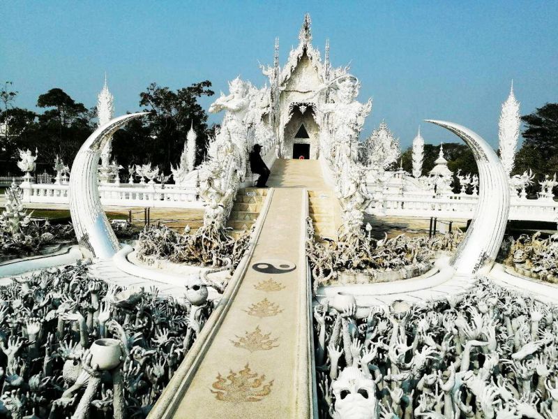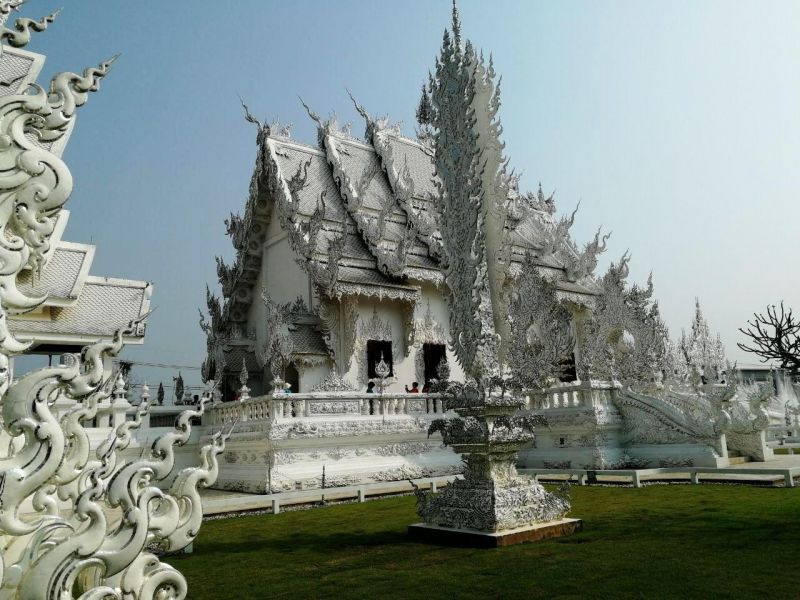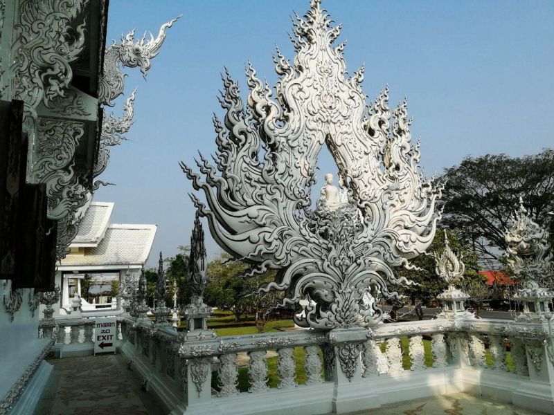 Храм очень необычен. Согласно канону, буддийский храм должен быть выполнен в золотом цвете. А этот храм полностью белый.