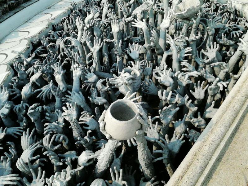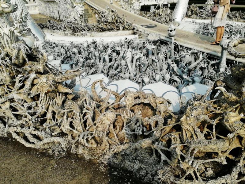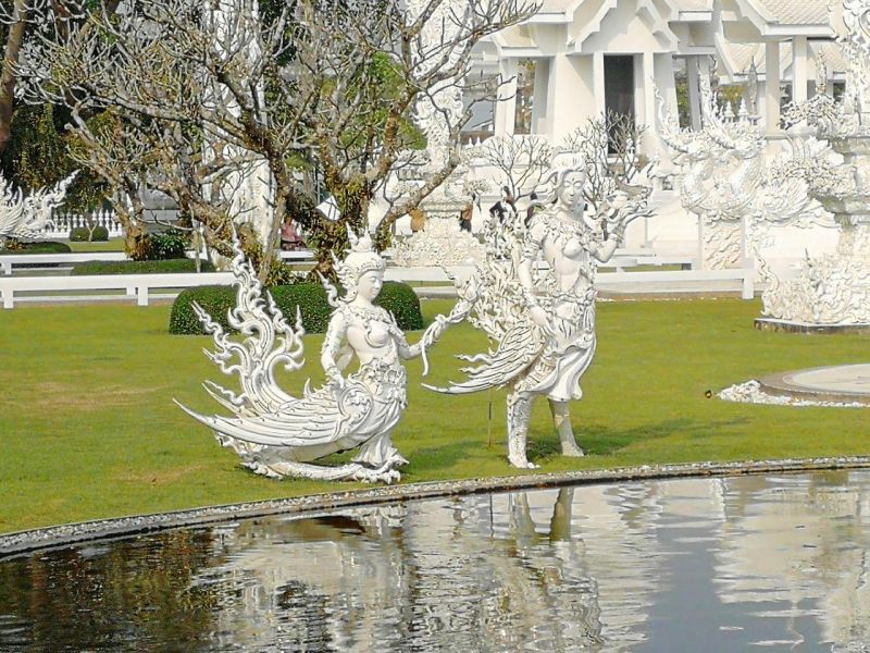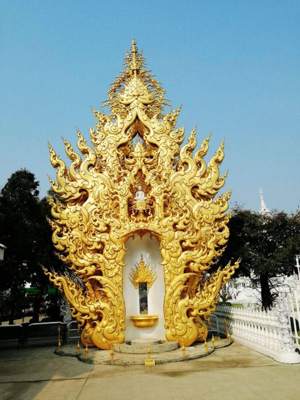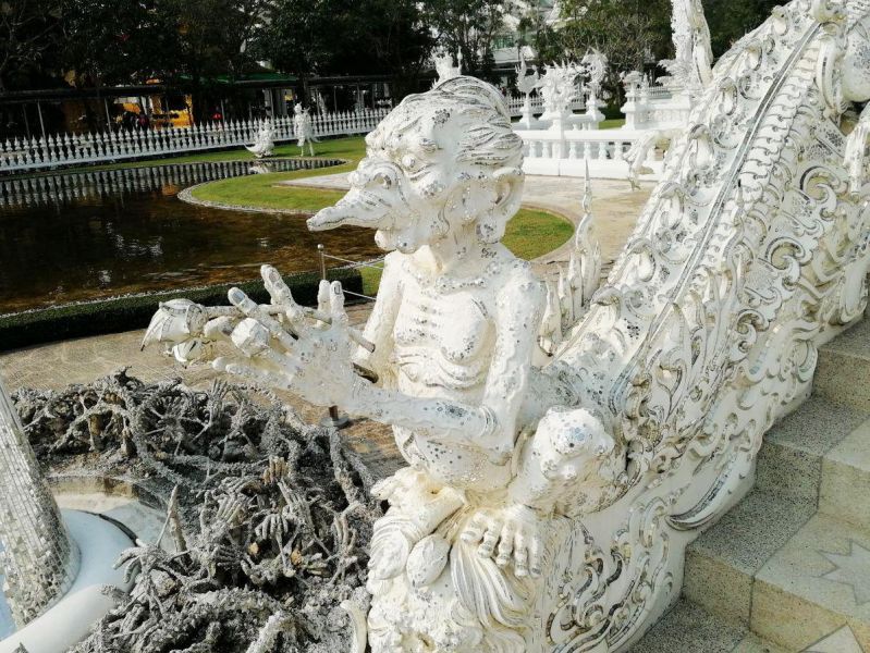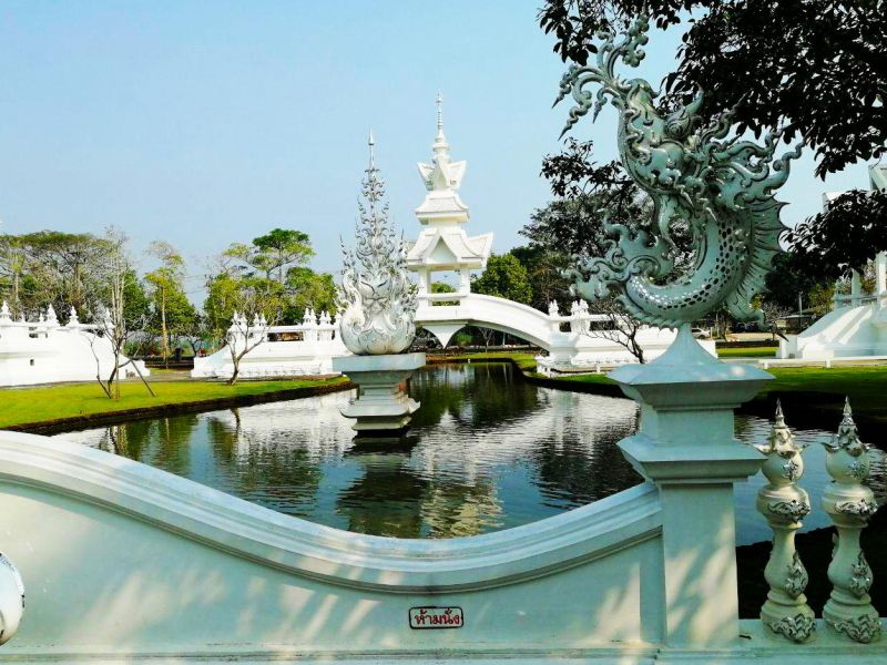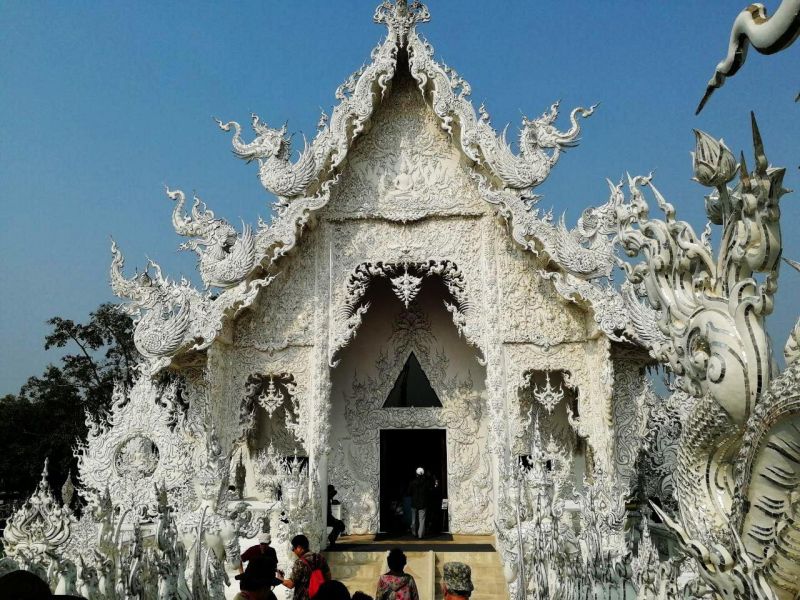 Храм очень необычен. Согласно канону, буддийский храм должен быть выполнен в золотом цвете. А этот храм полностью белый.
