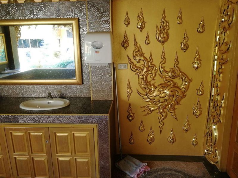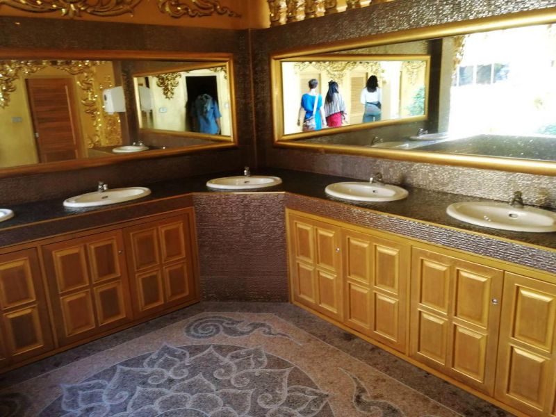 Ведь этот небольшой дворец – общественный туалет. Вполне современный изнутри. Золотых унитазов там, правда, нет, а вот отделка и впечатляет.