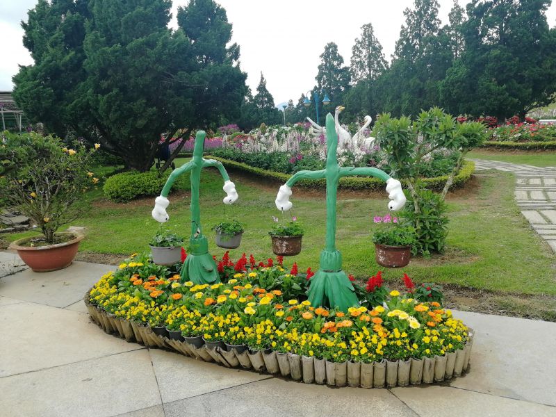 Это ландшафтный парк, на территории красиво разбиты цветочные газоны, парковые зоны, составленные из более чем 300 сортов разнообразных цветов: кактусы, гортензии, розы, орхидеи, гладиолусы, астры, мимозы, герберы, рододендроны, деревья бонсай, персиковые и абрикосовые деревья и т.д – растения со всего мира и из совершенно разных климатических зон.