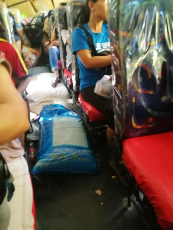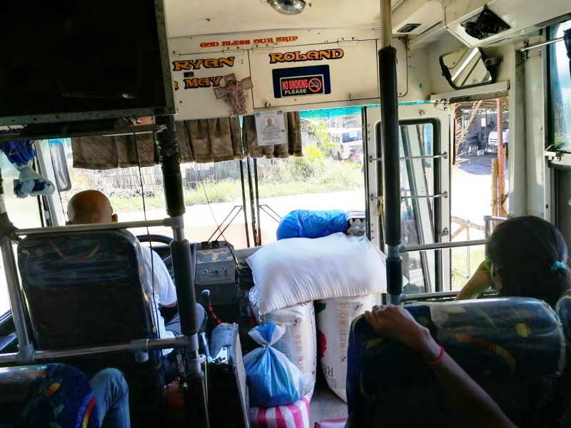 Наш автобус был полностью заполнен. И не только филиппинцами. Оказывается, рейсовые автобусы используются для перевозки не только людей, но и грузов. Наш автобус был забит разными тюками. И внутри, и снаружи, то есть на крыше.