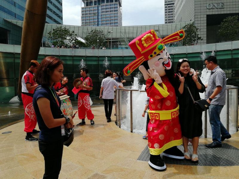 Из обряда устроили шумное и зрелищное шоу. Наряженные сингапурцы бьют в барабаны, посетителей встречают аниматоры в ярких костюмах и в шутливой форме показывают, как надо совершить обряд, фотографируются со всеми желающими.