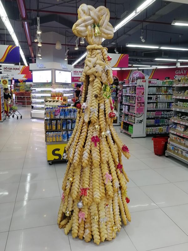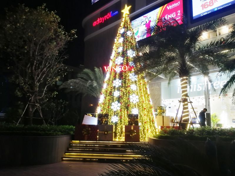 Так как в Нячанге я была в декабре, то конечно сделала фото елок. Это елка перед входом в торговый центр Винкомплаза.