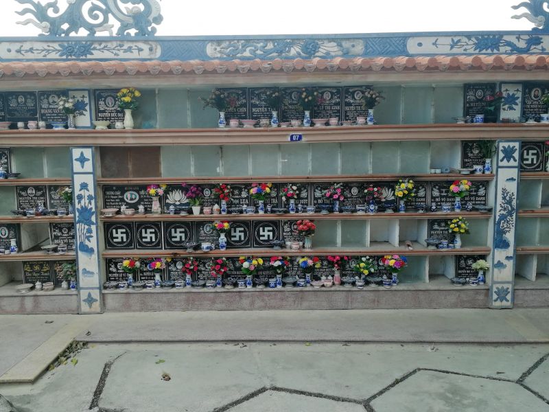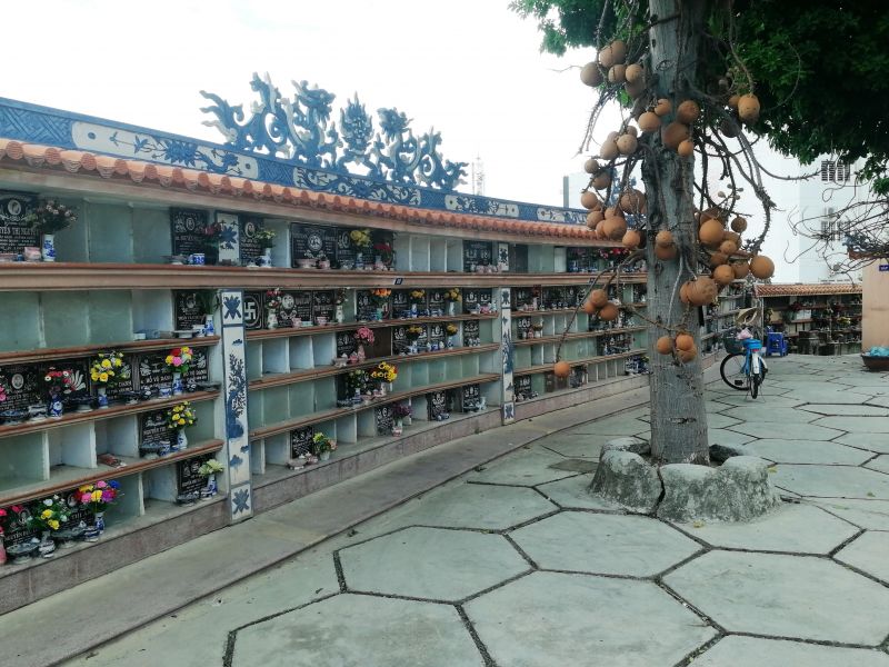 Оказалось, что это не просто красивый храм и тихое место. При храме оказался колумбарий. Поэтому посмотрела, как вьетнамцы хранят урны с прахом умерших.