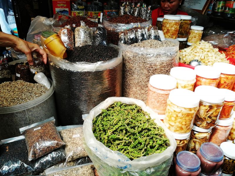 Тут же можно купить и приправы, в том числе – знаменитый кампотский перец (Кампот – это город недалеко от Кепа, где выращивают лучший перец. В Кампоте не была, но перец привезла).