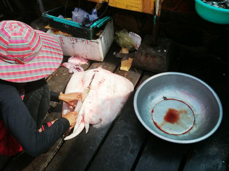 Поначалу мы тоже хотели купить крабов и приготовить их прямо на рынке. Но надо учитывать специфику южного рынка морепродуктов. Рыбу и прочую живность разделывают тут же.