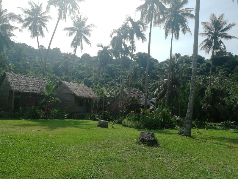 После пляжа прошли еще немного по тропинке и пришли к нескольким рыбацким избушкам, расположенным недалеко от моря. Дальше тропинка терялась в джунглях. По-видимому, она протоптана только до этой маленькой рыбацкой деревушки.