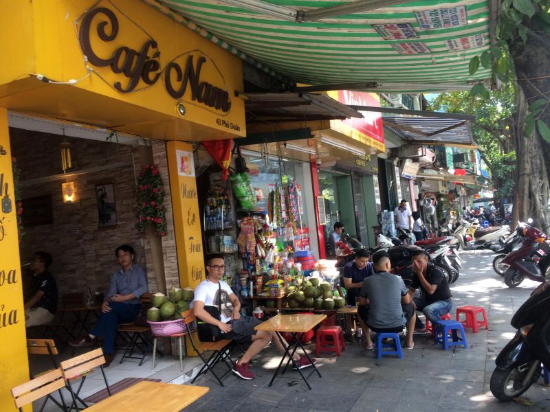 На первых этажах расположены магазинчики и маленькие кафе, возле которых постоянно сидят посетители. Особенность Вьетнама – маленькие, буквально детские столики и стульчики. Вьетнамцы на них вполне комфортно умещаются, мне тоже приходилось воспользоваться.