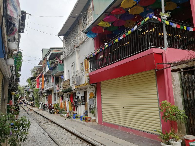 Дорога действующая, но поезда проходят нечасто, несколько раз в день. В промежутках по рельсам гуляют и местные, и туристы. На удивление чистая и уютная улочка.