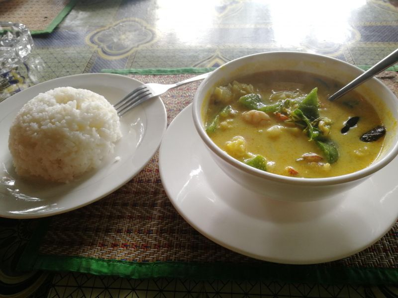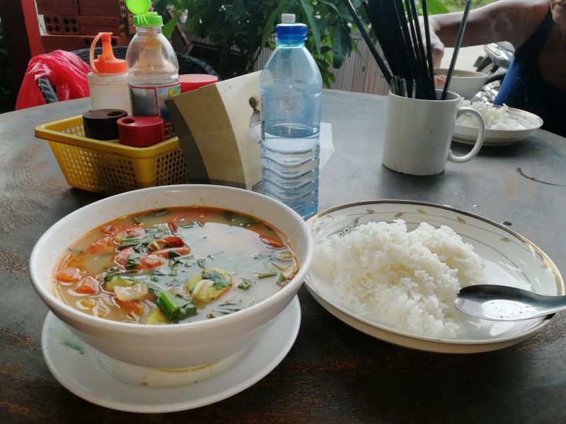 Очень понравился и запомнился еще один суп. Было это в Ангкоре. Мы попросили нашего моторикшу отвезти нас на обед в кафе с местной кухней. Мы приехали в небольшую кафушку чуть в стороне от дороги. Хозяйка, знакомая нашего водилы, немного растерялась, увидев туристов. Явно кафе предназначено только для своих.