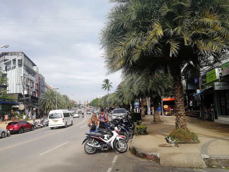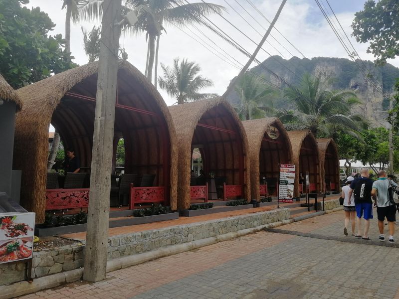 В основной части, вдоль которой проходит Набережная, деревьев практически нет. Точнее, они есть, но растут вдоль Набережной, которую отделяет от пляжа бетонная стена. Здесь довольно много лодок, особенно на участке, к которому выходит дорога. На повороте дороги, с левой стороны, расположено другое туристическое агентство, которое продает билеты в том числе и на лодки до пляжа Рэйли, поэтому лодки ждут туристов напротив.