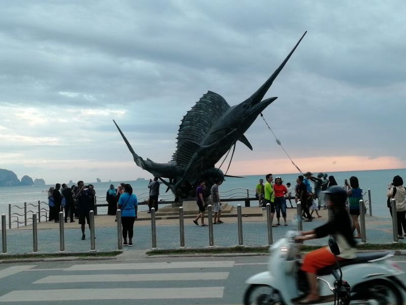 Вдоль пляжа идет набережная. Не сказать, что она широкая и красивая, как, например, набережные во вьетнамских Дананге и Нячанге, но по ней все равно приятно прогуляться вдоль моря, если не хочется идти по песку. Украшает Набережную скульптура – рыбаки ловят большую рыбу.