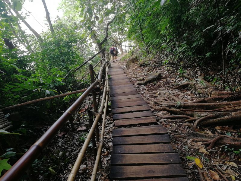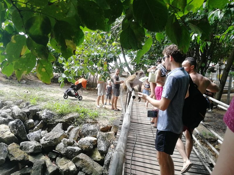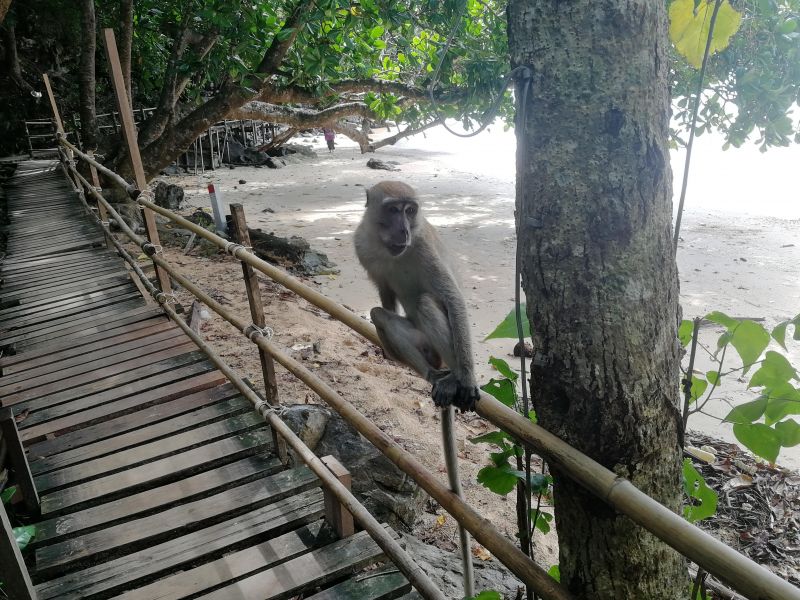 Добраться до пляжа можно на лодке или пешочком – по обезьяньей тропе. Тропа называется обезьяньей не только потому, что приходится карабкаться в гору, но и потому, что к ней спускаются с горы обезьяны. Чтобы попрошайничать у туристов всяких вкусняшек.