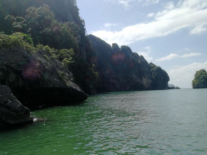 Но когда пройдешь по скалистой тропинке, открывается невероятно красивая бухта с отличным пляжем. С трех сторон бухту окружают скалы, поросшие обильной зеленью. В самой бухте расположен только один очень дорогой отель - Centara Grand Beach Resort. Поэтому все очень красиво, цивилизованно, чисто.