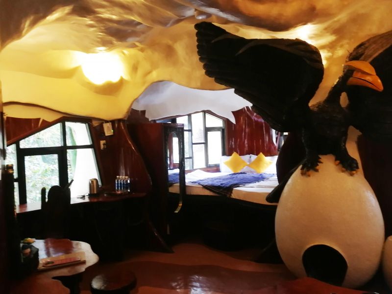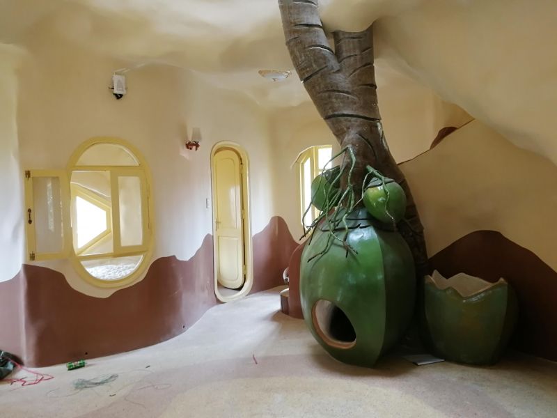 Строительство дома-дерева началось еще в 1990 году и до сих пор продолжается. Зашла в достроенный, но еще готовящийся к сдаче номер. И хотя меня оттуда выгоняли, удалось сделать пару фото.