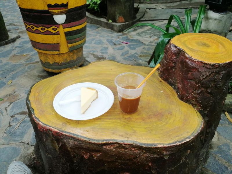 Есть на территории кафе, в котором я решила подкрепиться перед тем, как покинуть этот волшебный дом. Съела тирамису, выпила кофе, посидела на пенечке.