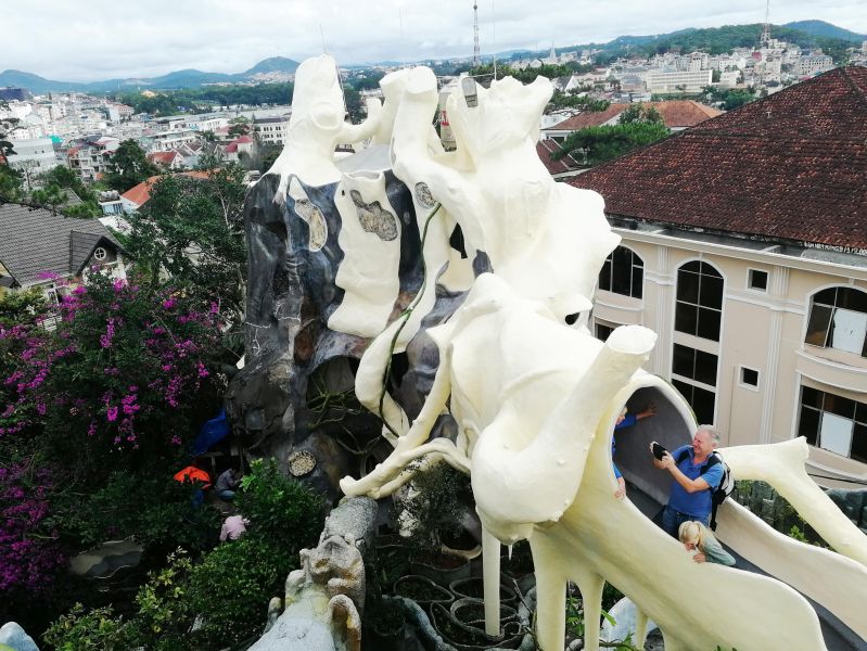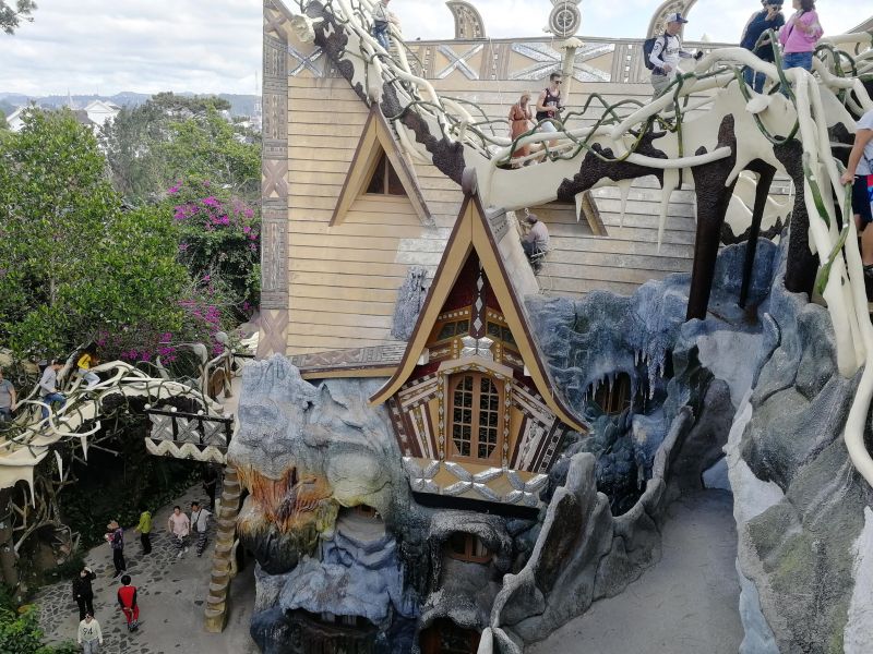 Говорят, местные жители и до сих пор недолюбливают это место. Оно совсем не вписывается в традиционную вьетнамскую культуру и не соответствует учению фен-шуй. Но эта постройка в стиле сюрреализма очень популярна у европейских и китайских туристов, поэтому народу здесь всегда много.