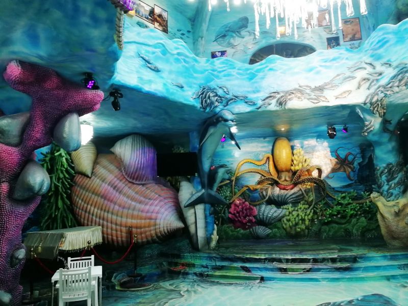 Помимо жилых номеров имеется невероятно красиво оформленный зал – Морской. Он предназначен для проведения мероприятий. В том числе, по утрам постояльцев кормят там завтраком.