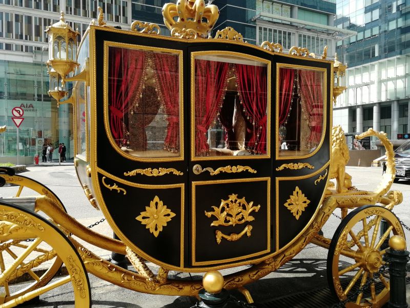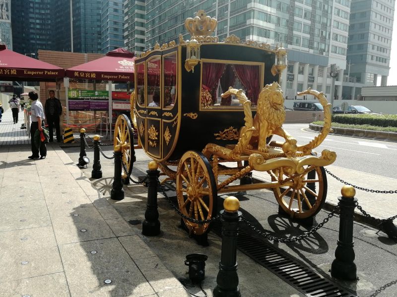 Перед отелем стоит золоченая карета.