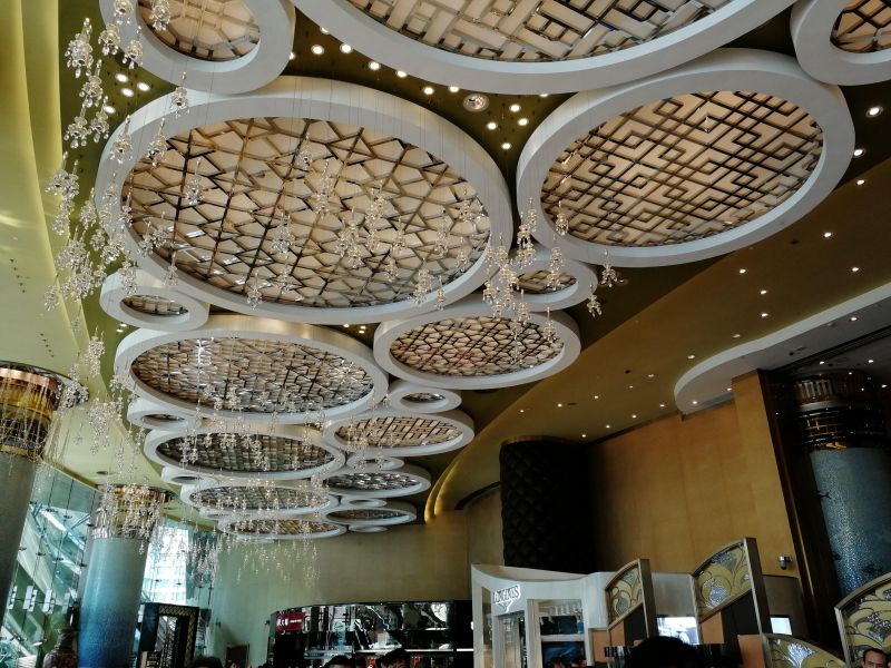 Интерьер комплекса поражает своей роскошью и элегантностью. Все выполнено в золотом цвете и оформлено хрустальными подвесками.