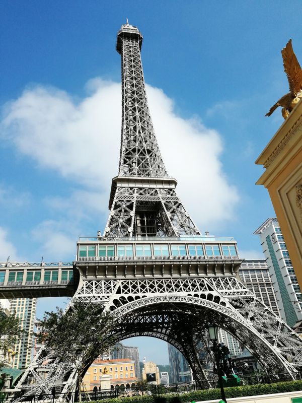 То, что отель как-то связан с Парижем, можно понять, даже не видя его названия – перед входом в отель стоит Эйфелева башня, выполненная в масштабе 1:2 к оригиналу, то есть ее высота 160 метров.