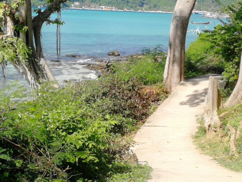 Вдоль пляжа, в зелени, проходит тропинка, по которой сюда можно дойти из города. Но в основном народ проходит мимо, направляясь на самый популярный пляж на Пхи-Пхи – Лонг Бич.