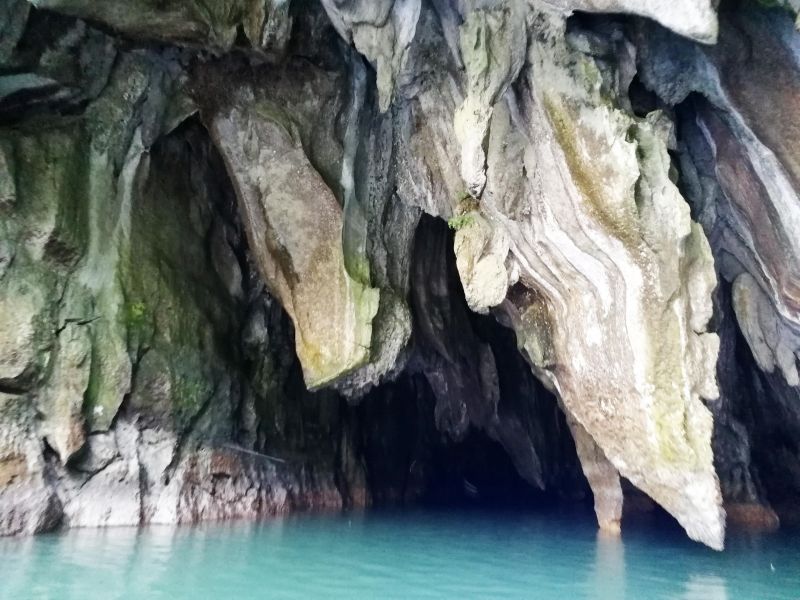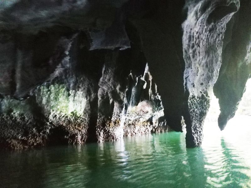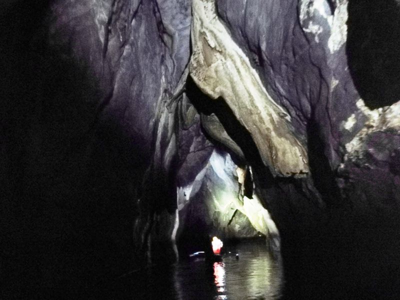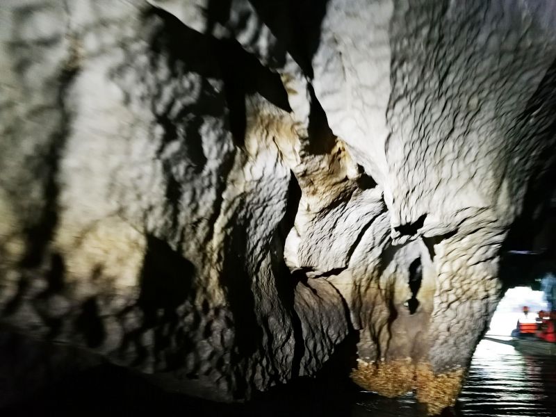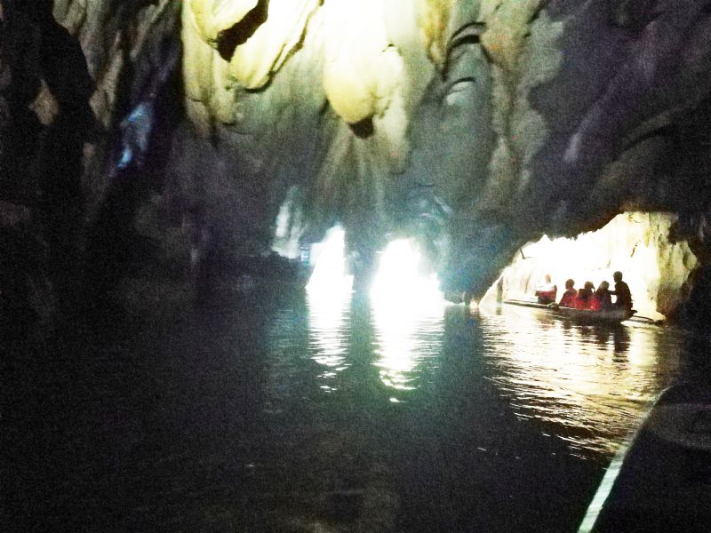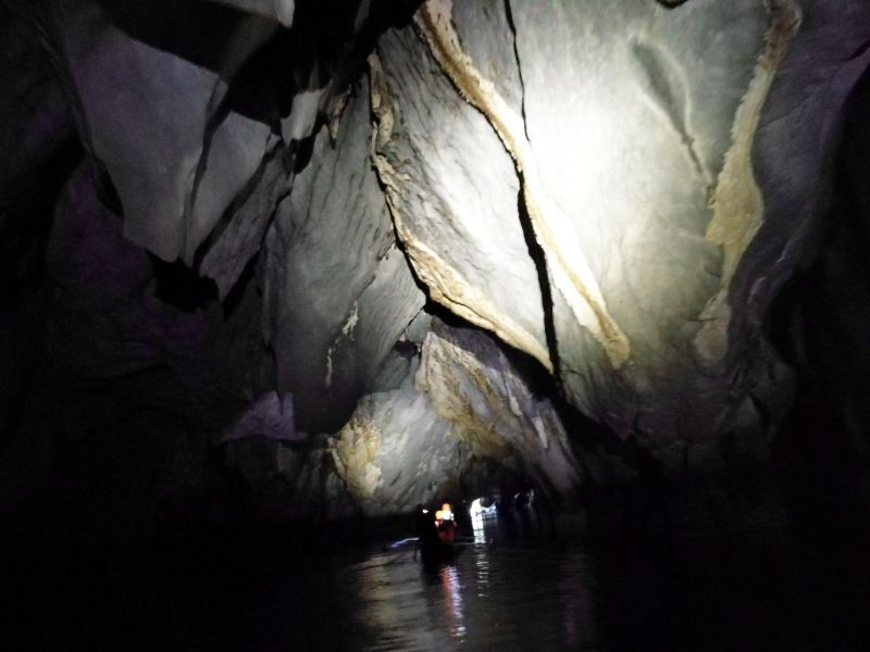 По подземной реке мы уже плыли на других, компактных лодочках, без рам-балансиров. Это позволяло проплывать между близко расположенных сталактитов и подплывать к стенам пещер.