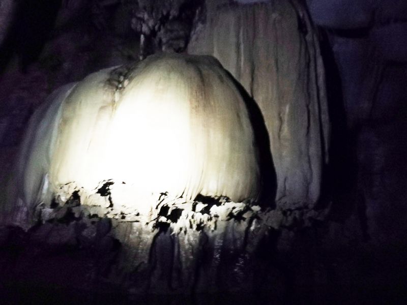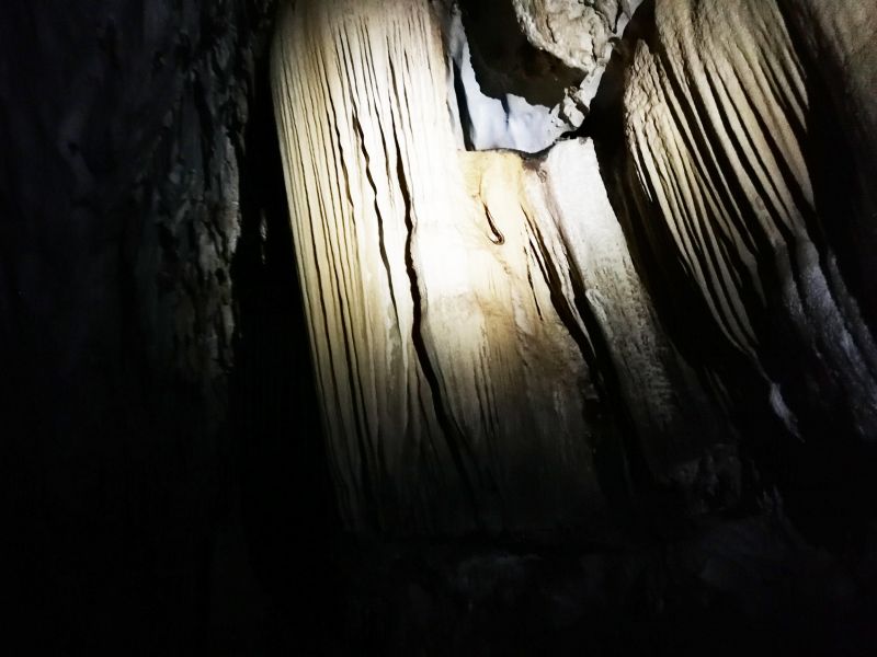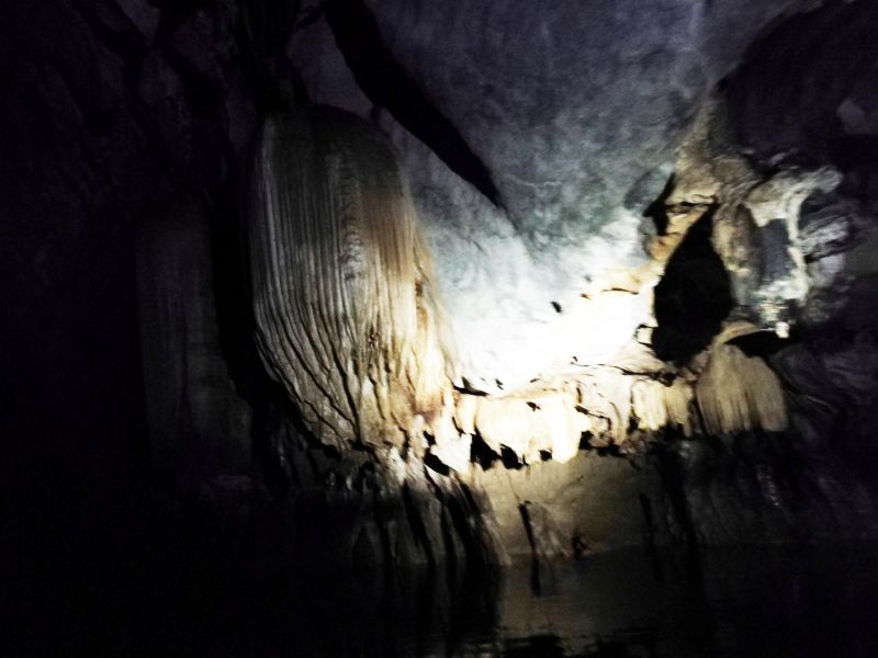В пещерах царит полная темнота. Увидеть можно только то, что освещает луч прожектора гида. Все выглядит очень загадочно и необычно. Иногда встречаются «окна», через которые неожиданно врывается небольшой поток света. К сожалению, фотографировать было сложно. Только нацелишься на интересный выступ пещеры – луч прожектора смещается. Могу только сказать, что в действительности все намного интереснее, загадочнее и эффектнее, чем выглядит на фото.
