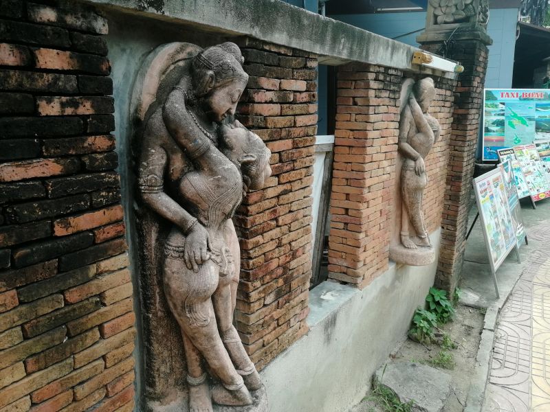 Весь Пхи-Пхи-Таун расположен на узком перешейке между двумя скалистыми островами. Площадей, пригодных для строительства, мало. Наверно, поэтому все постройки на острове (я не беру современные отели) какие-то маленькие, будто уменьшенные копии.