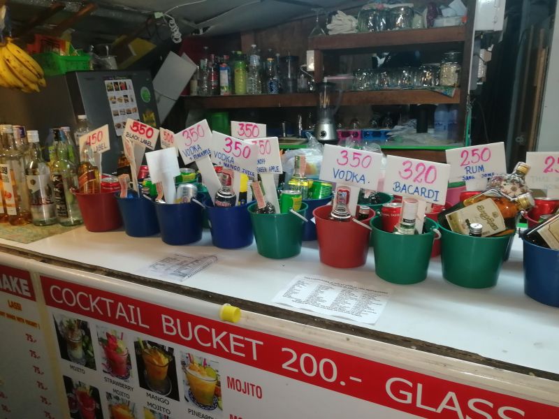 В корзинках, точнее, в ведерках, продают ингредиенты для коктейлей - осталось только смешать.
