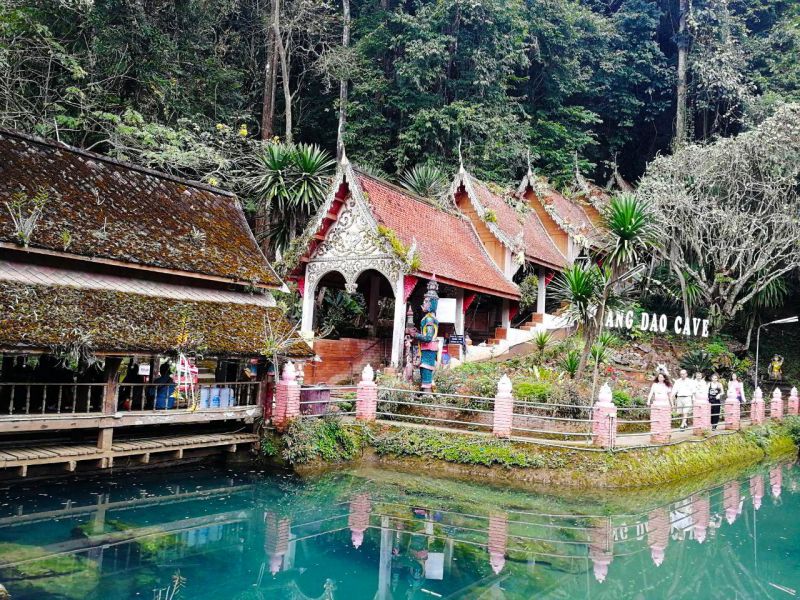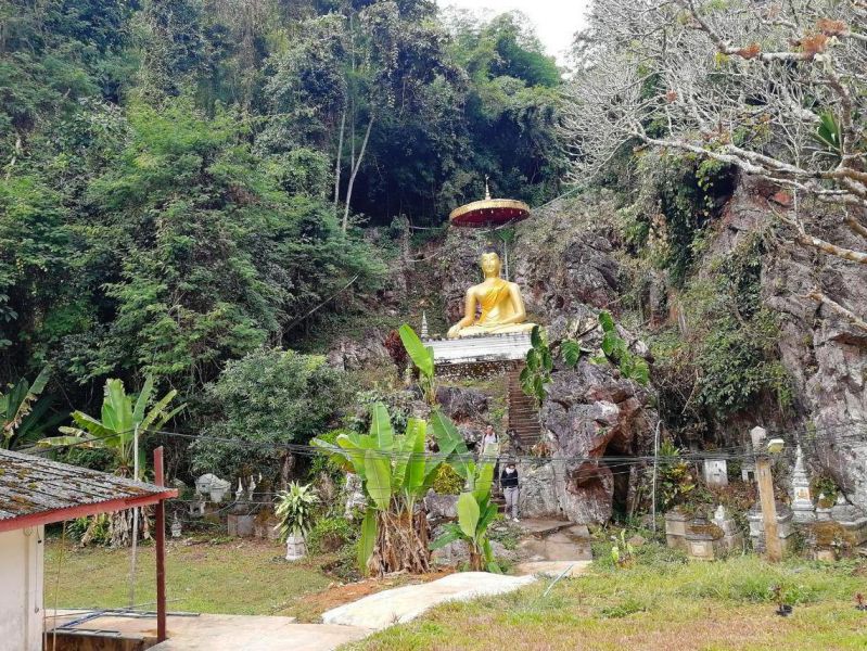 Недалеко от пещер находится большая автомобильная парковка, куда прибывают туристические минивэны из Чиангмая (русских туристических агентств нет, экскурсии проводят на английском), далее идешь по территории мимо небольших храмов и старинных скульптур: