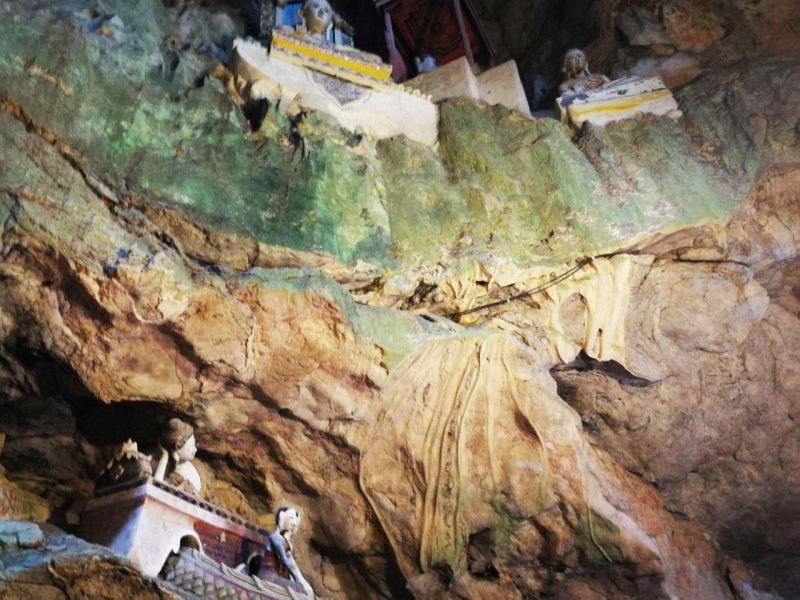 Вход платный, но всего 40 бат. Для посещения открыты 5 пещер, Пещеры представляют собой храм, расположенный внутри горы, и являются священным для буддистов местом. В нишах находятся скульптуры Будд, возле них встречаются молящиеся.